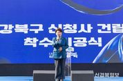[ 신경북일보 ] 강북구의회 김명희 의장(번1·2동, 수유2·3동)은 지난 3월 10일, 구(舊) 강북구청 광장에서 열린 ‘강북구 신청사 건립 착수 기공식’에 참석해 신청사 건립의 본격적인 시작을 함께했다. 이날 행사는 강북구립소년소녀합창단의 식전 공연으로 시작됐으며, 신청사 건립사업 홍보영상 ‘함께한 추억, 새로운 내일’ 상영에 이어 신청사 건립 추진경과 보고와 설계안 설명, 철거 및 본공사 일정 안내 등이 진행됐다. 강북구 신청사는 구(舊) 강북구청 부지와 인근 부지를 포함한 수유동 192-59번지 일원에 지하 6층~지상 17층, 연면적 약 6만8천㎡ 규모의 복합청사로 건립될 예정이며, 완공되면 강북구청·구의회·수유3동주민센터·보건소 등 주요 행정기관이 한곳에 모여 보다 효율적인 행정체계를 갖추게 된다. 전망대와 공연장, 북라운지 등 다양한 주민 편의시설도 조성되며, 건물을 들어 올린 개방형 1층 공간은 공원과 광장의 기능을 하는 주민 소통 공간으로 활용될 계획이다. 아울러 400면 이상의 지하주차장이 마련돼 수유역 일대 주차난 해소에도 도움이 될 것으로 기대된다. 김명희 의장은 “신청사 건립