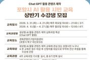 [ 신경북일보 ] 포항시가 시민들의 디지털 역량 강화를 위해 정보화교육과 생성형 AI 특강을 연계해 실시하고 있다. 시민정보화교육은 종합운동장 2층에서 3월부터 11월까지 운영되며, 매 회차 75명이 참여할 수 있다. 1회차 교육은 이미 시작됐으며, 컴퓨터와 인터넷 기초, 엑셀 2021, 스마트폰 활용 등 실생활에 필요한 내용이 포함되어 있다. 2회차 교육은 3월 24일부터 26일까지 신청을 받고, 3월 30일부터 4월 17일까지 진행된다. 이 과정에서는 컴퓨터활용능력(2급 실기), ITQ 엑셀, 한글 2022 등 다양한 프로그램이 마련된다. 교육 신청은 방문, 전화, 포항시 홈페이지를 통해 가능하며, 교육생은 전산 추첨으로 선정된다. 포항시는 정보화교육과 더불어 생성형 AI를 활용한 콘텐츠 제작 특강도 함께 운영한다. 이 특강은 경북콘텐츠기업지원센터에서 진행되며, ChatGPT를 활용한 글쓰기와 콘텐츠 제작 실습이 중심이다. 3·4기 특강은 4월에 운영되며, 3월 23일부터 25일까지 접수한다. 각 기수별로 20명을 전산 추첨해 개별 통보한다. 장상길 포항시장 권한대행은 정보화교육에 대한 시민들의 높은 관심을 바탕으로 생성형 AI 특강까지 확대하고 있다고