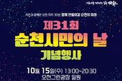 [ 신경북일보 ] ‘더 큰 미래를 위한 삶의 쉼터, 치유도시 순천!’ 그 새로운 도약을 위한 순천시(시장 노관규)가 오는 15일 오천그린광장 일원에서 24개 읍면동 화합행사와 함께 ‘제31회 순천시민의 날’기념식을 개최한다. 이번 행사는 오후 1시부터 밤 8시 30분까지 28만 순천시민이 하나되어 글로벌 문화산업, 삶이 머무는 치유도시 메카로 발돋움한 일류 순천의 자부심을 높이는 장으로 어울한마당 큰 잔치가 성대하게 펼쳐진다. 이날 펼쳐지는 제31회 순천시민의 날 행사는 지역사회의 화합과 단결을 다짐하고, 순천의 발전을 기념하는 의미있는 시간으로 1부 행사와 2부 행사로 나눠 진행된다. 1부 행사는 오천그린광장 주차장 일원에서 오후 1시부터 오후 5시까지 ▲24개 읍면동 화합을 위한 장기자랑 ▲어린이 한마당 잔치 ▲버블매직쇼 ▲울려라! 도전 순천역사골든벨 ▲읍면동 먹거리부스 ▲순천하세요!(김수련, 양서영, 하숙자 가수의 공연) ▲체험부스 ▲푸짐한 경품 등이 마련돼 가족 단위 방문객에게 인기가 높을 것으로 기대된다. 특히 시민들이 함께 즐길 수 있는 ‘먹거리 부스’에서는 24개 읍면동이 참여해 각 지