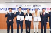[ 신경북일보 ] 충남도가 제110회 전국체육대회 개최지로 최종 선정되면서 도내에서 13년 만에 전국체전을 개최한다. 도는 11일 도청 상황실에서 대한체육회, 도체육회와 함께 ‘2029년 제110회 전국체육대회 개최 업무 협약식’을 열고, 전국체육대회 성공 개최를 위해 손을 맞잡았다. 김태흠 지사와 유승민 대한체육회장, 김영범 도체육회장 등 관계자 10여 명이 참석한 가운데, 이번 행사는 간담회, 협약서 서명 등의 순으로 진행했다. 이번 협약에 따라 세 기관은 △2029년 전국체육대회, 2030년 전국소년체육대회, 2031년 전국생활체육대축전 개최 △경기장 시설 개·보수 등 대회 준비에 협력한다. 제110회 전국체육대회 유치를 위해 도는 지난 2월 도체육회를 통해 대한체육회에 유치 신청서를 제출했으며, 대한체육회는 7월 전국종합체육대회위원회 예비 심사와 8월 이사회 의결을 거쳐 충남을 개최지로 확정했다. 제110회 전국체육대회는 오는 2029년 10월 중 7일간 도내 15개 시군 전역에서 열리며, 전국에서 3만 여명의 선수단이 참가할 것으로 예상된다. 주 개최지는 201