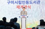 [ 신경북일보 ] 25년의 시간을 지나온 구미시립인동도서관이 복합문화공간으로 새롭게 태어났다. 구미시는 지난 23일 대대적인 리모델링을 마친 구미시립인동도서관 재개관식을 열고 시민과 함께 새로운 출발을 알렸다. 재개관식에는 구미시장을 비롯해 시·도의원, 관계기관 인사, 시민 등 200여 명이 참석했다. 행사는 경과보고를 시작으로 기념사와 축사, 축하공연, 테이프커팅, 시설 관람 순으로 진행됐다. 행사 당일 김유대 작가 초청 워크숍과 즉석사진 촬영, 체험 행사(태극기키링·마카롱·비누캔들만들기, 천아트), 장미숙 일러스트 작가 초대전도 함께 열려 재개관의 의미를 더했다. 인동도서관은 2000년 개관 이후 시설 노후화와 에너지 성능 저하, 폐쇄적인 공간 구조로 이용 불편이 꾸준히 제기돼 왔다. 시는 이를 해결하기 위해 2024년 국토교통부 공공건축물 그린리모델링 공모사업으로 46억 원(국비 32억, 도비 4억, 시비 10억))을 확보하고, 2025년 공공도서관 건립지원 전환사업을 통해 12억 원을 추가 확보해 전면적인 환경개선에 나섰다. 이번 리모델링의 방향은 명확했다. ‘엄숙한 학습 공간’이라는 기존 도서관의 이미