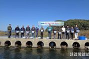 [ 신경북일보 ] 고령군은 29일 낙동강 지류인 운수면 대평리 회천 일원에서 경상북도의회(도의원 노성환), 경상북도 토속어류산업화센터, 운수면 대평리 주민들이 참여한 가운데 붕어, 동자개, 미꾸리 어린고기 13만미와 다슬기 치패 13만 마리를 방류했다. 이번 행사는 경상북도 수산자원연구원 토속어류산업화센터에서 주관했으며 내수면 어자원 회복 및 어업인 소득 향상을 위해 진행됐다. 이번에 방류된 토종 민물고기는 크기 4cm이상 어린고기로, 최근 기후변화와 더불어 외래종의 확산에 따른 토종 민물고기의 개체수가 줄어들고 있는 상황에서 수산자원 증식과 생태계 복원에 크게 기여할 것으로 기대된다. 고령군은 지난해 이곳 대평리 회천에서 잉어류, 동자개 9만미와 다슬기 치패 12만 마리를 방류한 바 있으며, 지속적인 토종어류 방류를 통해 건강한 자연생태계 유지와 수산자원 복원화에 꾸준히 노력할 계획이다.