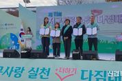 [ 신경북일보 ] 경상북도는 탄소중립 사회 이행을 위한 강력한 실천 의지를 다지고 민관 협력체계를 강화하기 위해 8일 KT&G 김천공장 운동장에서 ‘제11회 경상북도 지구사랑 실천더하기 다짐대회’를 개최했다. 양금희 경상북도 경제부지사를 비롯해 배낙호 김천시장, 도의원, 도·시군 환경 업무 담당 공무원, 기업체 환경기술인, 환경단체 관계자 800여 명이 참석해 탄소중립 실천 의지를 다졌다. 이날 행사는 정진영 경북녹색환경지원센터장의 개회선언을 시작으로 환경보전 유공자 표창, 대회사, 지구사랑 실천 다짐문 낭독, 탄소중립 퍼포먼스 순으로 진행됐다. 지구사랑 실천 다짐문을 통해 경상북도는 탄소중립 정책 추진을 강화하고, 시군은 시민과 함께하는 탄소중립 도시 조성을 약속했다. 아울러, 기업은 친환경 기술개발과 온실가스 저감에 앞장서고, 환경단체는 생활 속 실천으로 미래세대가 안심할 수 있는 사회 조성에 적극 동참하기로 했다. 기후 위기 대응을 위해 ‘탄소중립 1번지!, 미래세대와 함께하는 경상북도! ’라는 슬로건 아래, 대회를 통해 탄소중립 정책의 공감대를 형성하고 앞으로도 지역 차원의 환경