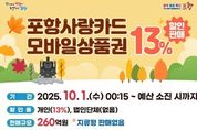 [ 신경북일보 ] 포항시는 추석 명절 지역경제 활력 제고를 위해 내달 1일부터 카드형·모바일 포항사랑상품권(이하 포항사랑카드)을 260억 원 규모로 13% 할인 판매한다. 시는 지난 9일 발행한 600억 원 규모 상품권이 완판됨에 따라, 내달에도 13% 할인 판매를 통해 시민과 소상공인들에게 직접적인 혜택을 제공하고, 지역 골목상권 소비 촉진의 마중물 효과를 이어가겠다는 방침이다. 올해 포항시는 당초 목표보다 500억 원 확대한 총 3,000억 원 규모의 상품권을 발행한다. 연말까지 매월 초 상품권을 발행하며 13% 할인율을 유지해 지역 자금 역외 유출을 막고 소상공인 매출 증대, 지역경제 선순환 구조 강화에 기여할 계획이다. 개인별 구매 한도는 월 50만 원, 보유 한도는 100만 원으로 조정된다. 개인을 대상으로만 할인하고, 지류형은 판매하지 않는다. 상품권은 10월 1일 0시 15분부터 모바일 앱 ‘iM샵’에서 충전할 수 있으며, 104개 판매대행 금융기관 영업점에서도 영업시간 내 충전이 가능하다. 포항사랑카드는 실물카드 결제 외에도 ▲삼성페이 ▲네이버페이 QR결제