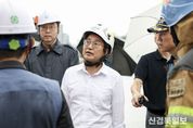 [ 신경북일보 ] 민생경제 현장투어차 안양시를 방문 중이던 김동연 경기도지사가 건설현장 외벽 붕괴사고 발생 소식을 듣고 급히 현장에 출동해 사고수습 상황을 점검하고 안전조치를 지시했다. 김동연 지사는 16일 오후 사고가 발생한 안양시 만안구 안양동 건설현장을 찾아 현황을 살핀 후 신속한 복구와 재발 방지 노력 등을 당부했다. 김 지사는 이날 현장에서 “일단 복구가 우선이니까 작업을 중지하고 오늘 자정까지 복구를 진행하고, 추가 피해가 없도록 재발 방지를 신경쓰도록 하라”고 말했다. 이어 “원인규명을 해서 책임 소재를 분명히 가리도록 하라”고 당부했다. 김 지사는 또 소방본부, 경찰서, 안양시, 도가 함께 철저한 대책을 만들도록 지시했다. 이날 사고는 오후 2시경 돌풍에 의해 빌딩 외벽에 설치된 비계가 붕괴되면서 발생한 것으로 알려졌다. 인명이나 재산피해는 없었다. 경기도는 현장에서 작업 중이던 40명 정도의 노동자를 대피시키는 한편 이날 자정까지 비계를 완전 철거하고 다시 설치하도록 했다. 민생경제 현장투어의 하나로 안양시를 방문한 김 지사는 이날 오전 안양 인덕원 환승주차