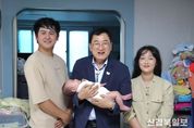 [ 신경북일보 ] “아이 키우기 좋은 환경 조성, 경주시가 책임지겠습니다.” 경주시는 주낙영 시장이 지난 23일 충효동에 거주하는 김도형(33)·임소라(32) 씨 가정을 직접 찾아 여섯째 딸 나은 양의 출산을 축하하고, 기저귀와 육아용품 등 선물을 전달했다고 24일 밝혔다. 이번 방문은 저출생 사회에서 다자녀 가정을 응원하고 출산의 기쁨과 가치를 지역사회에 확산하기 위해 마련됐다. 주 시장은 이 자리에서 여섯 자녀들의 건강한 성장을 기원하며, 생애주기별 인구정책 안내서와 함께 공동육아 나눔터, 다함께 돌봄센터 등 돌봄 시설을 소개했다. 경주시는 ‘결혼하고 아이 키우기 좋은 경주’ 조성을 목표로 다양한 정책을 추진하고 있다. 현재 출산축하금 20만원과 출산장려금으로 첫째 300만원, 둘째 500만원, 셋째 이상 1,800만원을 지원하며, 지역특산품과 육아용품(15만원 상당)으로 구성된 출산축하박스, 산후조리비 50만원 등도 제공한다. 이 가정의 경우 출산장려금과 첫만남 이용권, 부모급여, 아동수당 등 각종 혜택을 포함해 여섯째 자녀 출생으로 총 8,448만원 상당의 지원을 받