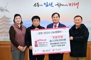 [ 신경북일보 ] 대한곡물협회 김천시지부(지부장 윤진채)에서는 26일 김천시청을 방문해 ‘희망2026 나눔캠페인’ 성금 300만 원을 기부했다. 윤진채 지부장은 "회원들의 뜻을 모아 이웃사랑과 나눔을 실천하는 ‘희망2026 나눔캠페인’에 기부할 수 있어 매우 뜻깊게 생각한다. 앞으로도 지역사회 발전에 기여할 수 있도록 노력하겠다.”라고 전했다. 배낙호 김천시장은 “윤진채 지부장님과 회원님의 따뜻한 나눔 활동에 감사드린다. 지역사회의 연대와 나눔이 김천시가 지속적인 발전을 이어가는 원동력이 된다.”라고 말했다. 대한곡물협회는 양곡을 도정하는 사업자와 양곡을 보관하는 사업자들을 대표하는 비영리 사단법인으로, 김천시지부는 10명의 회원으로 운영되고 있다.