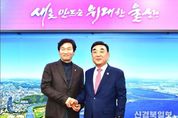 [ 신경북일보 ] 조현일 경산시장은 17일 김두겸 울산시장을 만나 ‘경산~울산 간 고속도로 건설’ 사업 확정을 위해 공동 대응하기로 뜻을 모았다. 경산~울산간 고속도로는 기존 경주시를 경유하는 경부고속도로 또는 밀양시를 경유하는 신대구부산고속도로 및 밀양울산고속도로를 이용하여 우회하던 노선을 경산시와 울산광역시를 직결 노선으로 전환해 거리는 23km, 시간은 16분 단축할 수 있는 사업이다. KOSIS(국가통계포털, KOrean Statistical Information Service)에 따르면, 2022년 기준 제조업 분야 중소기업의 물류비는 매출액 기준 6.71%를 차지하고 있으며, 이 중 운송비는 57.9%로 총매출 대비 3.89%에 달한다. 경산시의 자동차부품 관련 기업(2023년 기준 2,000여 개 이상)의 총매출 5조 8,473억 원에 적용하면 약 2,274억 원이 운송비로 지출되는 규모이며, 고속도로 건설 시 최소 31.5%의 운송 거리 단축 효과가 발생함에 따라 연간 약 716억 원의 물류비 절감이 가능한 것으로 추정된다. 또한, 절감된 물류비가 기업 내 재투자 되면 생산유발효과,