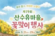 [ 신경북일보 ] 의성군이 주최하는 제19회 산수유마을 꽃맞이행사가 3월 21일부터 29일까지 사곡면 화전 2·3리 일대에서 열린다. 사곡면에 위치한 산수유꽃피는마을은 약 3만 그루의 산수유나무가 군락을 이루고 있어, 봄마다 노란 산수유꽃이 만개하는 풍경으로 많은 방문객을 끌어모으는 지역 명소다. 산수유꽃은 매화 이후 이른 봄에 피는 대표적인 봄꽃으로, '영원불변의 사랑'이라는 꽃말을 지니고 있다. 의성 산수유마을에서는 매년 3월부터 4월 초까지 산수유꽃이 절정을 이루며 관광객들의 발길이 이어진다. 행사 기간 동안 산수유 꽃길을 따라 다양한 공연과 체험 행사가 마련된다. 지역 예술단체와 전문 예술인이 참여하는 버스킹 공연이 진행되며, 초청 가수로는 21일 에녹, 29일 린이 무대에 오른다. 이 밖에도 산수유압화작품 전시, 바람개비 만들기, 오카리나 만들기 체험, 의성 캐릭터 '육쪽이를 찾아라' 이벤트 등 다양한 체험 프로그램이 준비된다. 농특산물 판매장터와 먹거리장터도 운영돼 방문객들에게 다양한 즐길거리를 제공한다. 의성군은 행사 기간 동안 관광객 편의를 위해 산수유마을 일원에 셔틀버스를 운행한다. 김주수 의성군수는 "산수유꽃은 봄의 시작을 알리는