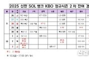 [ 신경북일보 ] KBO는 26일(금) 2025 신한 SOL뱅크 KBO 정규시즌 2차 잔여 경기 일정을 확정했다. 편성된 경기는 1차 잔여 경기 일정에서 우천 취소된 후 편성되지 않았던 7경기이며, 10월 3일(금)까지 편성됐다. 경기가 우천 등으로 취소될 경우 발표된 일정의 예비일로 우선 편성되며, 다음 날 동일 대진일 경우 더블헤더로 편성된다. 예비일이 없을 경우 추후 편성된다. 경기 개시시간은 평일 18시 30분, 토요일 17시, 일요일 14시이다. 또한 10월 3일(금) 경기는 해당 구단의 전날 경기 후 이동을 고려하여 17시에 편성한다. 한편, 우천 등으로 연기되는 경기가 포스트시즌 참가팀 이외의 팀간 경기이거나 포스트시즌 진출팀이라도 해당 시리즈와 관계없는 대진일 경우에는 정규시즌 최종일과 와일드카드 결정전 개막일 사이의 이동일 또는 포스트시즌 기간 중에도 경기를 거행할 수 있으며 와일드카드 결정전 진출 구단의 정규시즌 마지막 경기와 와일드카드 결정전 개최일 사이 최소 하루의 이동일을 둘 예정이다. 또한, 정규시즌 제1,5위 구단이 두 팀일 경우에는 KBO 리그 규정에 의거 와일드카드 결