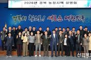 [ 신경북일보 ] 경상북도는 2월 11일 도청 화백당에서 시‧군 농정 부서장과 유관 기관 관계자 등 150여 명이 참석한 가운데 2026년 농정시책 설명회를 개최했다. 이번 회의에서는 2026년 경북 농정방향과 5대 중점 추진전략을 공유하고, 경북형 공동영농의 시군 연계 강화 방안과 국비 공모사업 대응 전략 등 주요 현안을 심도 있게 논의했으며, 시‧군의 다양한 의견을 청취하는 시간도 가졌다. 2026년 경북농정은‘농업소득 두 배로! 경북 농업대전환 확산 가속’을 목표로 ▲든든한 농업, 새로운 기회가 되는 농촌으로 대전환 ▲K-푸드 선도, 글로벌 농식품산업 구현 ▲농업생산시스템 혁신, 미래 신성장 동력 창출 ▲가축개량 및 스마트 기술로 미래 선진 축산 구현 ▲차단방역으로 건강한 가축, 안전한 축산물 공급 등 5대 중점 전략을 중심으로 추진해 나갈 계획이다. 특히, 도는 농식품부 국정과제로 채택된 경북형 공동영농의 도약을 위해 올해부터는‘선 교육 후 지원’체계를 본격 도입하고, 단계별 지원체계를 정립해 나가기로 했다. 마을 및 들녘 단위의 공동체 중심으로 역량 강화 교육을 추진할 방침이다.