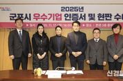 [ 신경북일보 ] 군포시는 17일 시청 3층 중회의실에서 ‘2025년 군포시 우수기업 인증서 및 현판 수여식’을 열고 5개 우수기업에 인증서와 현판을 수여했다. ‘우수기업 선정사업’은 2022년부터 시작하여 올해 4번째로 추진하는 사업으로 일자리 창출, 세수 증대 등 지역경제 활성화에 기여한 기업을 선정하여 인센티브를 부여하는 사업이다. 선정된 우수기업은 인증기간(3년) 동안 군포시 중소기업 육성자금 지원 시 추가 이차보전, 군포시 관내 공영주차장 이용 시 주차요금 감면, 협약병원 의료비 지원 등의 인센티브가 부여된다. 하은호 군포시장은 “어려운 경제 상황 속 관내 우수한 기업에 활력을 불어넣기 위한 우수기업 선정사업에 관심 가져주심에 감사드리며, 앞으로도 기업지원 사업을 다각화하여 기업 경영하기 좋은 환경을 만들겠다”고 말했다. 올해 선정된 군포시 우수기업은 △(주)아이씨에이치 △㈜지비티코리아 △주식회사예선테크 △듀라텍 주식회사 △㈜트리플닷 으로 총 5개 기업이다. [뉴스출처 : 경기도 군포시]