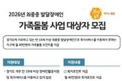 [ 신경북일보 ] 경기도가 2026년 최중증 발달장애인 가족돌봄 사업 대상자 145가구를 12월 2일까지 모집한다. 최중증 발달장애인이란 도전적 행동이 심하고 일상생활에 제약을 지닌 통합돌봄이 필요한 발달장애인이다. 경기도는 돌봄이 필요한 모든 도민들을 대상으로 누구나, 언제나, 어디나 빈틈없는 돌봄을 제공하는 360도 돌봄사업을 하고 있다. 최중증 발달장애인 가족돌봄 사업은 이 가운데 ‘어디나 돌봄’ 사업의 하나로 진행한다. 2024년 4월 처음 가족돌봄 사업을 시행한 이래 매달 210가구에 월 40만 원씩 돌봄포인트를 제공해 생필품 구입부터 여가활동 지원까지 다양한 부분에서 사용하여 장애인 당사자와 가족의 생활안정에 기여하고 있다. 2026년 최중증 발달장애인 가족돌봄 사업의 지원 대상은 경기도에서 거주하는 복지관, 직업재활서비스 등 복지서비스 미이용으로 돌봄사각지대에 놓인 만 18세 이상 발달장애인이다. 선정 시 월 40만 원 가족돌봄포인트를 1년간 지원하고 지속적인 모니터링으로 복지서비스와 대상자를 연계하는 서비스를 제공한다. 2026년 모집인원은 145명으로 전년과 다르게 모집인원을 시군별