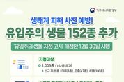 [ 신경북일보 ] 생태계 피해 사전 예방! 유입주의 생물 152종 추가 - '유입주의 생물 지정 고시' 개정안 12월 30일 시행 ■ 지정대상 - 1,005종 (152종 추가) · 신규 지정 종: 어류(5종), 곤충(47종), 식물(100종) ■ 신규로 지정된 152종 수입하려는 경우 - 사전 관할 유역(지방)환경청 승인 필요 ※ 불법 수입 시 2년 이하 징역 또는 2천만원 이하 벌금 부과 ■ 확인방법 - 기후에너지환경부 누리집 및 한국외래생물정보시스템(2026년 1월 공개) 생태계 보전을 위해 유입주의 생물 수입에 각별한 주의를 기울여 주세요! [뉴스출처 : 기후에너지환경부]