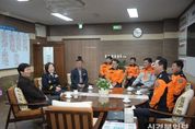 [ 신경북일보 ] 경산소방서는 13일 오전 조현일 경산시장이 소방서를 방문해 명절 기간에도 현장을 지키는 소방공무원들을 격려했다고 밝혔다. 이번 방문은 설 명절을 앞두고 시민의 생명과 재산 보호를 위해 불철주야 근무 중인 직원들의 노고를 위로하고 감사의 뜻을 전하기 위해 마련됐다. 또한 경산소방서 각 부서 관계자들이 함께 자리해 현장의 의견을 나누고, 앞으로의 안전대책에 대한 다양한 논의도 이루어졌다. 특히 조현일 시장은 최근 발생한 송유관 폭발 화재 현장을 언급하며, 위험한 상황 속에서도 침착하고 신속하게 대응하는 소방관들의 모습에 깊은 감명을 받았다고 전했다. 조 시장은 “시민의 안전을 지키는 일에 있어 소방공무원들의 헌신과 희생은 무엇과도 바꿀 수 없는 소중한 자산”이라며 “앞으로도 안전한 경산을 만들기 위한 협력과 지원을 아끼지 않겠다”고 강조했다. 한창완 경산소방서장은 “시장님의 방문과 격려는 소방관들에게 큰 힘이 된다”며 “우리 소방서는 지역사회 안전을 위해 앞으로도 변함없이 최선을 다할 것”이라고 답했다. 경산소방서는 앞으로도 재난 대응 역량을 강화하고, 시민이 안심할 수