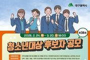 [ 신경북일보 ] 대구광역시는 건강하고 바른 성장으로 지역사회의 귀감이 된 청소년을 발굴·포상하기 위해 ‘2026년 제38회 대구광역시 청소년대상’ 후보자를 2월 24일부터 3월 20일까지 공개 모집한다. 1989년 첫발을 내디딘 ‘청소년대상’은 건강하고 올바른 청소년 상(像) 정립을 위해 매년 각 분야의 모범 청소년을 시상해 왔다. 지난해까지 총 250명(대상 36명, 우수상 111명, 장려상 103명)의 수상자를 배출하며 지역을 대표하는 청소년 포상으로 자리 잡았다. 후보자 자격은 공고일(2.23.) 현재 대구시에 1년 이상 계속 거주하고 있는 만 9세 이상 24세 이하 청소년으로, 구청장·군수, 학교장, 청소년 관계기관장 등의 추천을 통해 접수할 수 있다. 시상 부문은 △선행효행 △창의인재 △푸른성장 3개 분야며, 선정 인원은 대상 1명을 포함해 각 부문별 우수상 1명, 장려상 1명씩 총 7명이다. 대상은 수상 후보자 중 여러 면에서 성품과 행동이 가장 훌륭해 모든 청소년의 귀감이 되는 청소년에게 수여된다. 선행효행 부문은 지역사회를 위한 봉사활동 중 선행을 하거나, 부모에게 효도